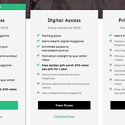 Men’s Health magazine was first published in the USA in 1987. Since then, it has gone into print in 26 international versions, and has its own online presence. This gives you the same as you get with the off-the-shelf print magazine, but you don’t have to leave your home to find it. You can subscribe for various features at a range of prices (see the screencaps), or you can browse the free sections of the site. When you do, you will find articles and opinion pieces, information about health, lifestyle, fitness, entertainment and grooming, and you will find content written by top journalists. It's a well-edited, highly successful magazine, and you can access much of it for free.